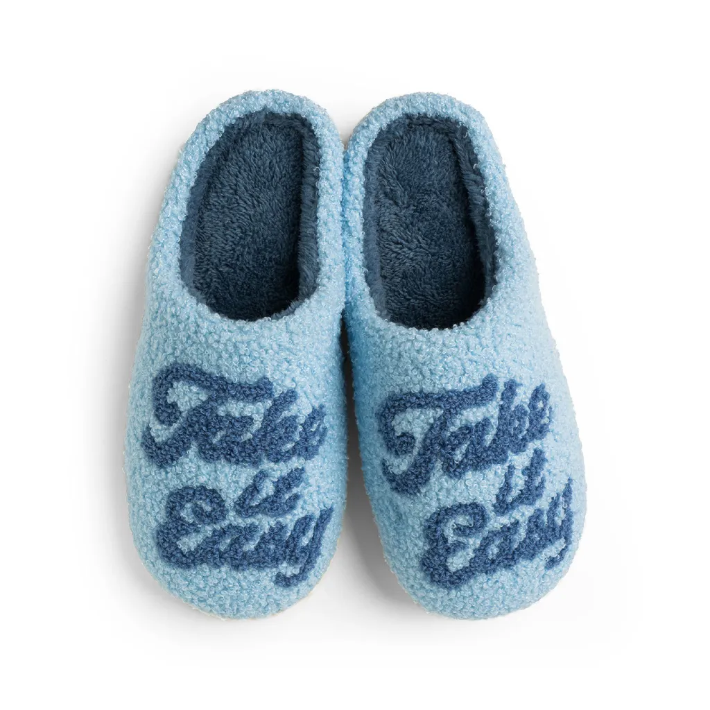 These cozy cushy slippers with fun prints & phrases are so cute and comfy!